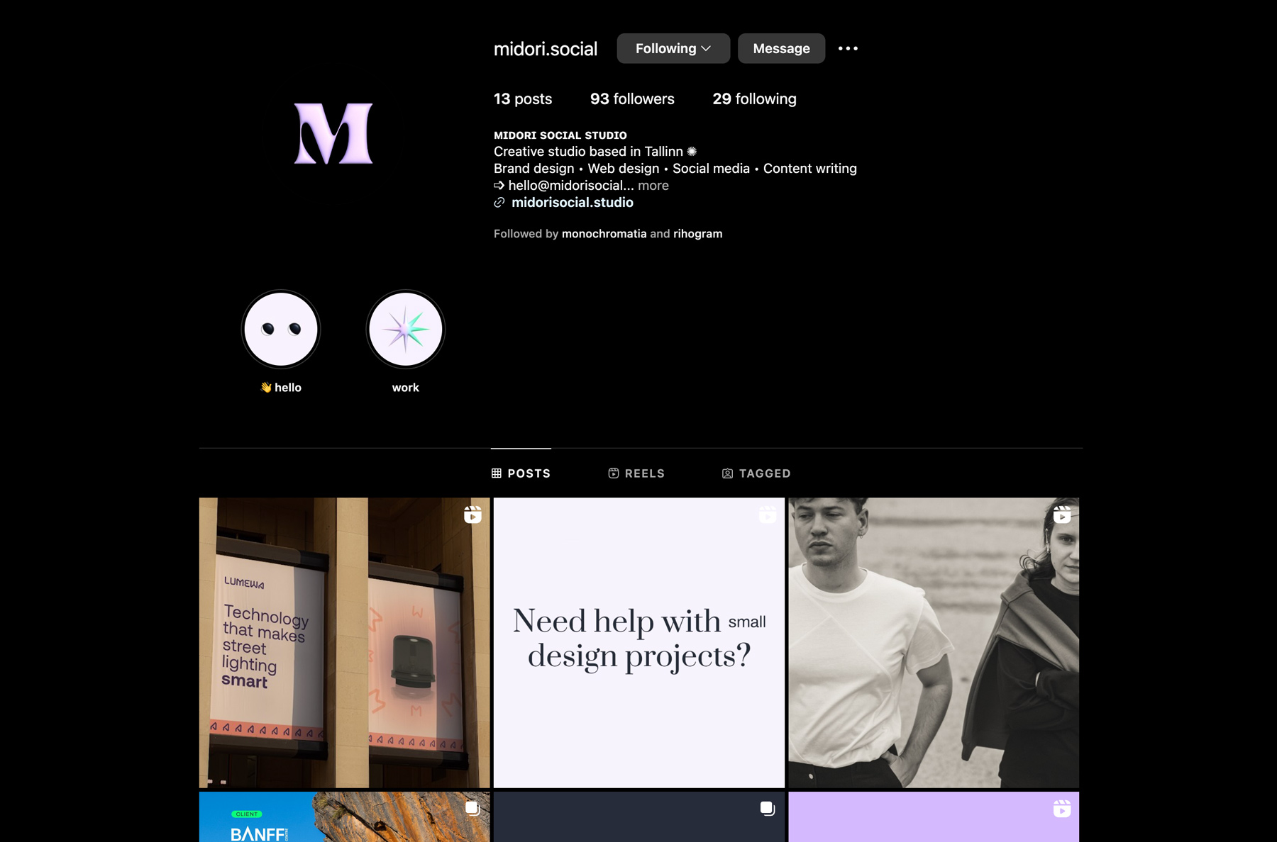 Midori Social Studio is a design and marketing agency that specializes in visual identity, web design, social media marketing and copywriting.
